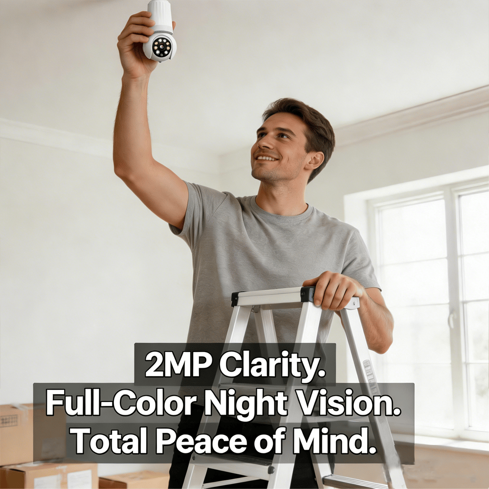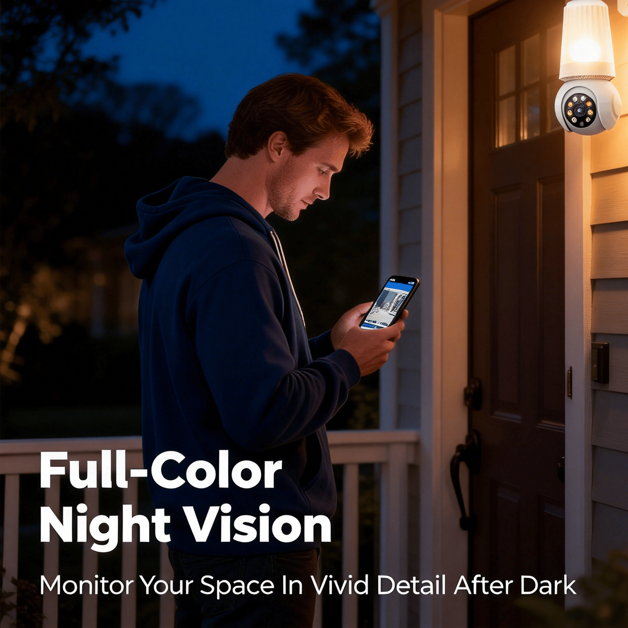 Keep your home protected anytime, anywhere with this Smart Light Bulb-Style Wi-Fi Security Monitor. Designed for easy installation and powerful performance, it delivers crystal-clear 2MP video, real-time mobile alerts, and two-way voice communication — all from your smartphone.